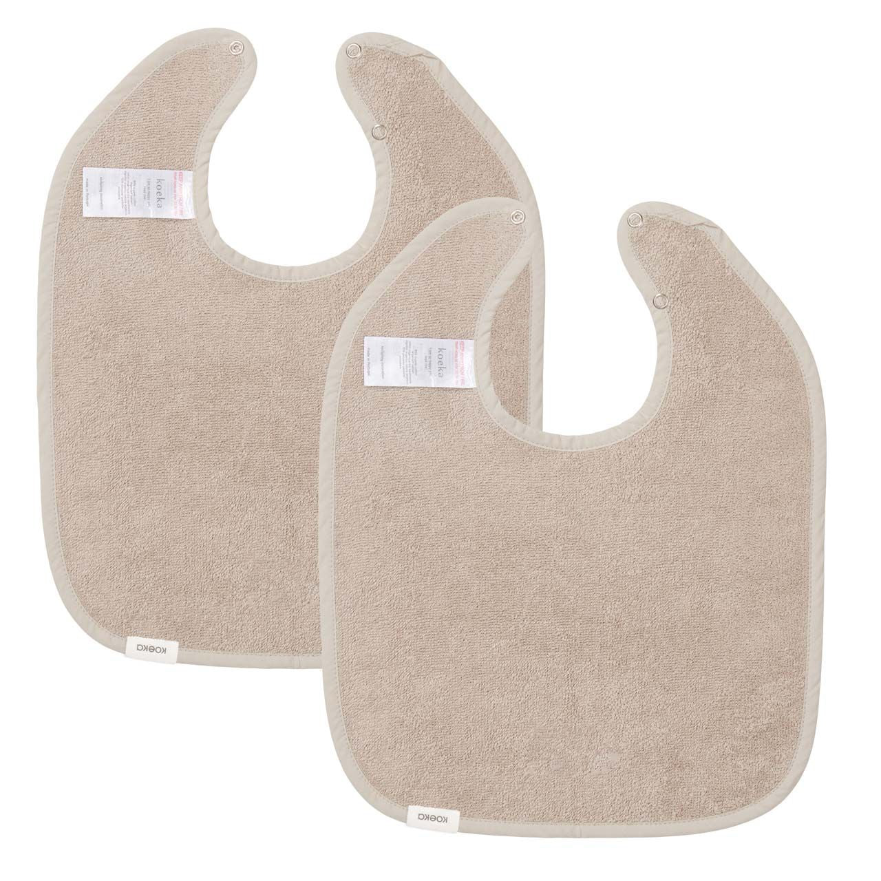 De befaamde Koeka slabber in 2-pack omdat je er nooit genoeg kunt hebben!Houd de kleding van je baby schoon met deze praktische Koeka slabber. Door het fijne grote formaat beschermt de slabber de kleding goed tegen knoeien. Omdat de slab een drukknoopsluiting met twee verschillende standen heeft, is deze geschikt voor zowel baby als dreumes en kan je hem dus extra lang gebruiken. De afwerking met de bies die matcht met de kleur van het badstof geeft de slabber een eigen look. Het mooie, lusvaste en vochtopnemende badstof van biologisch katoen is gemakkelijk en eindeloos te wassen.