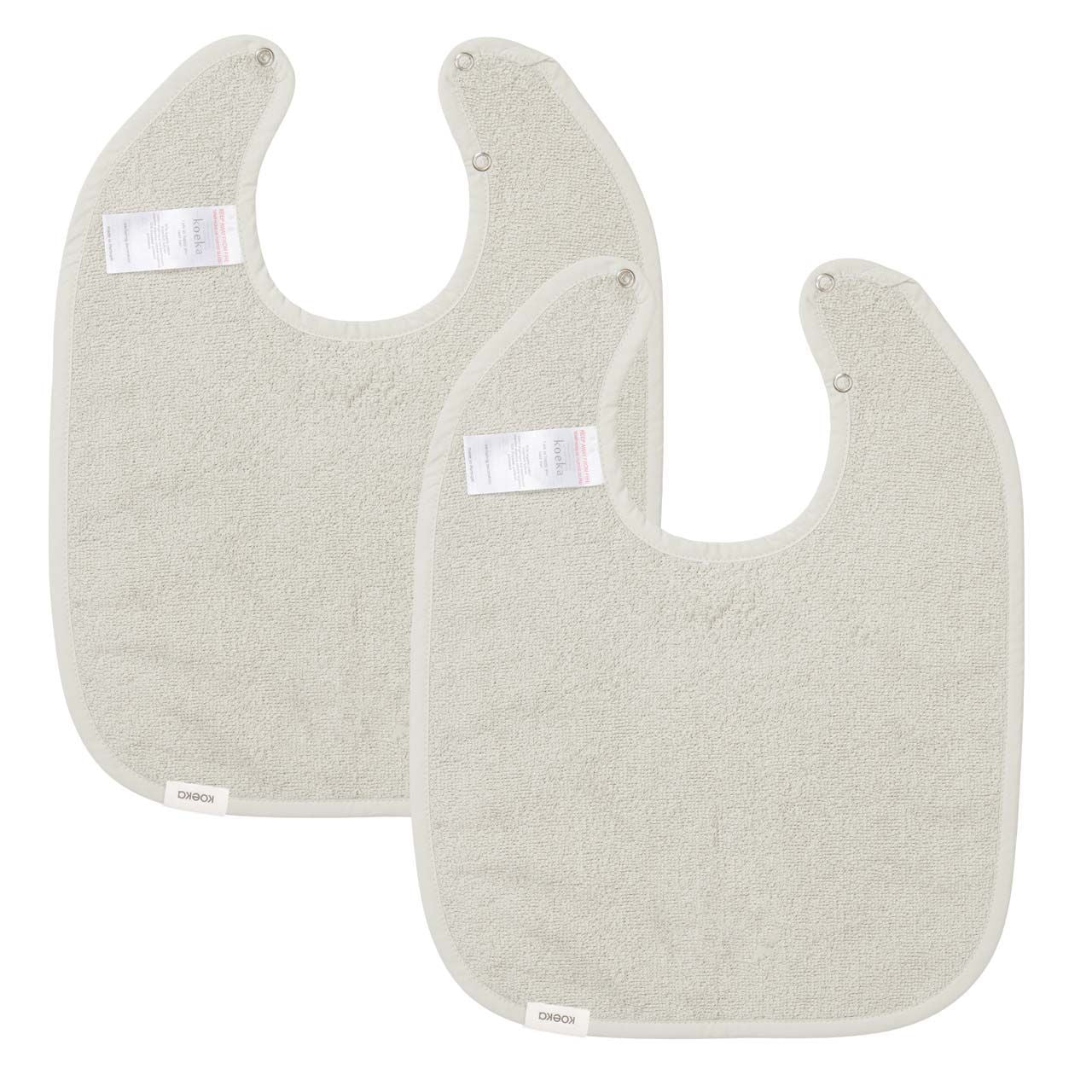 De befaamde Koeka slabber in 2-pack omdat je er nooit genoeg kunt hebben!Houd de kleding van je baby schoon met deze praktische Koeka slabber. Door het fijne grote formaat beschermt de slabber de kleding goed tegen knoeien. Omdat de slab een drukknoopsluiting met twee verschillende standen heeft, is deze geschikt voor zowel baby als dreumes en kan je hem dus extra lang gebruiken. De afwerking met de bies die matcht met de kleur van het badstof geeft de slabber een eigen look. Het mooie, lusvaste en vochtopnemende badstof van biologisch katoen is gemakkelijk en eindeloos te wassen.