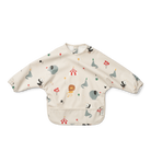 Lichtgewicht cape slabbetje met opvangvakje voor kinderen die leren te eten. Het gerecyclede materiaal maakt het direct herbruikbaar: gewoon afspoelen en schoonvegen.