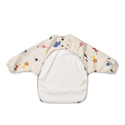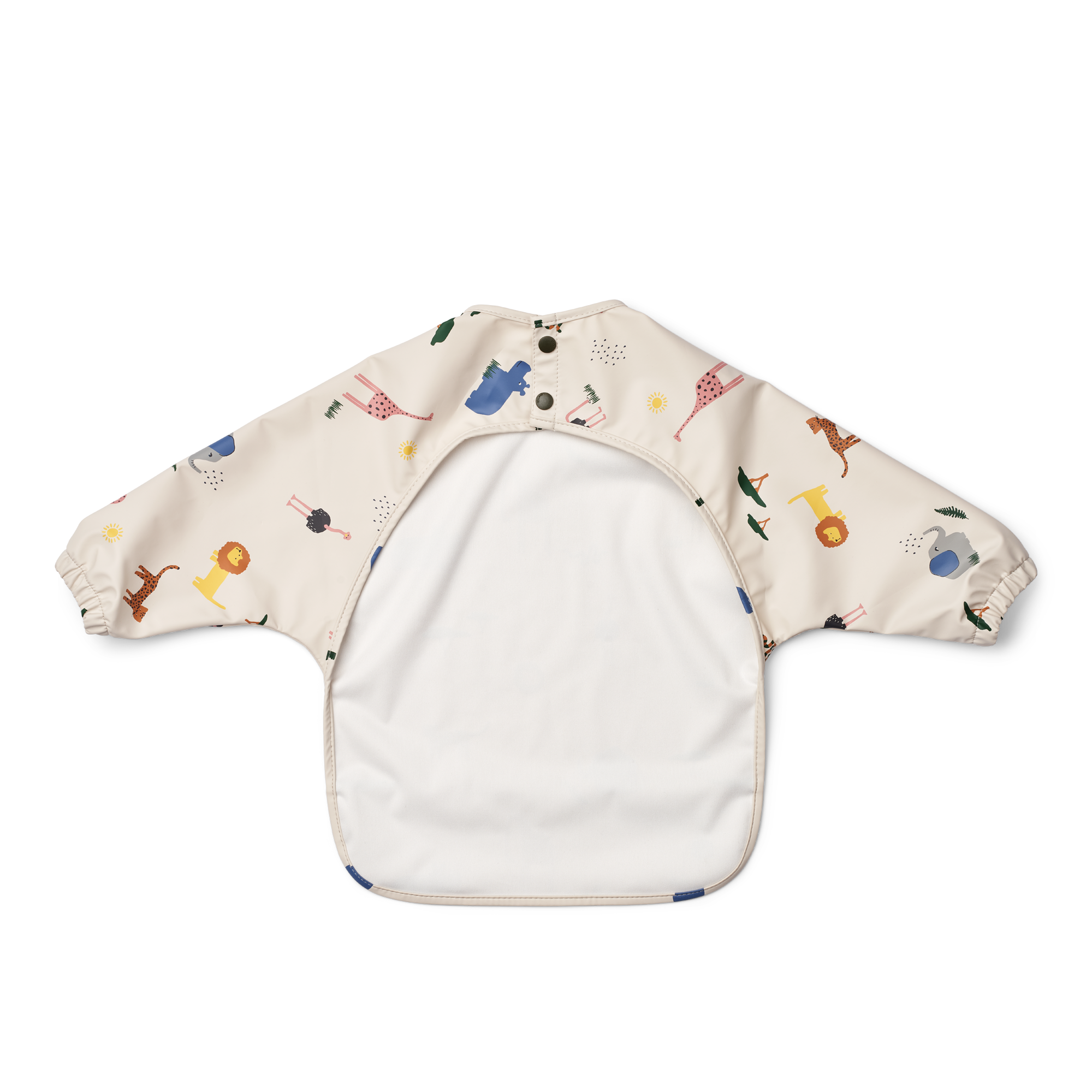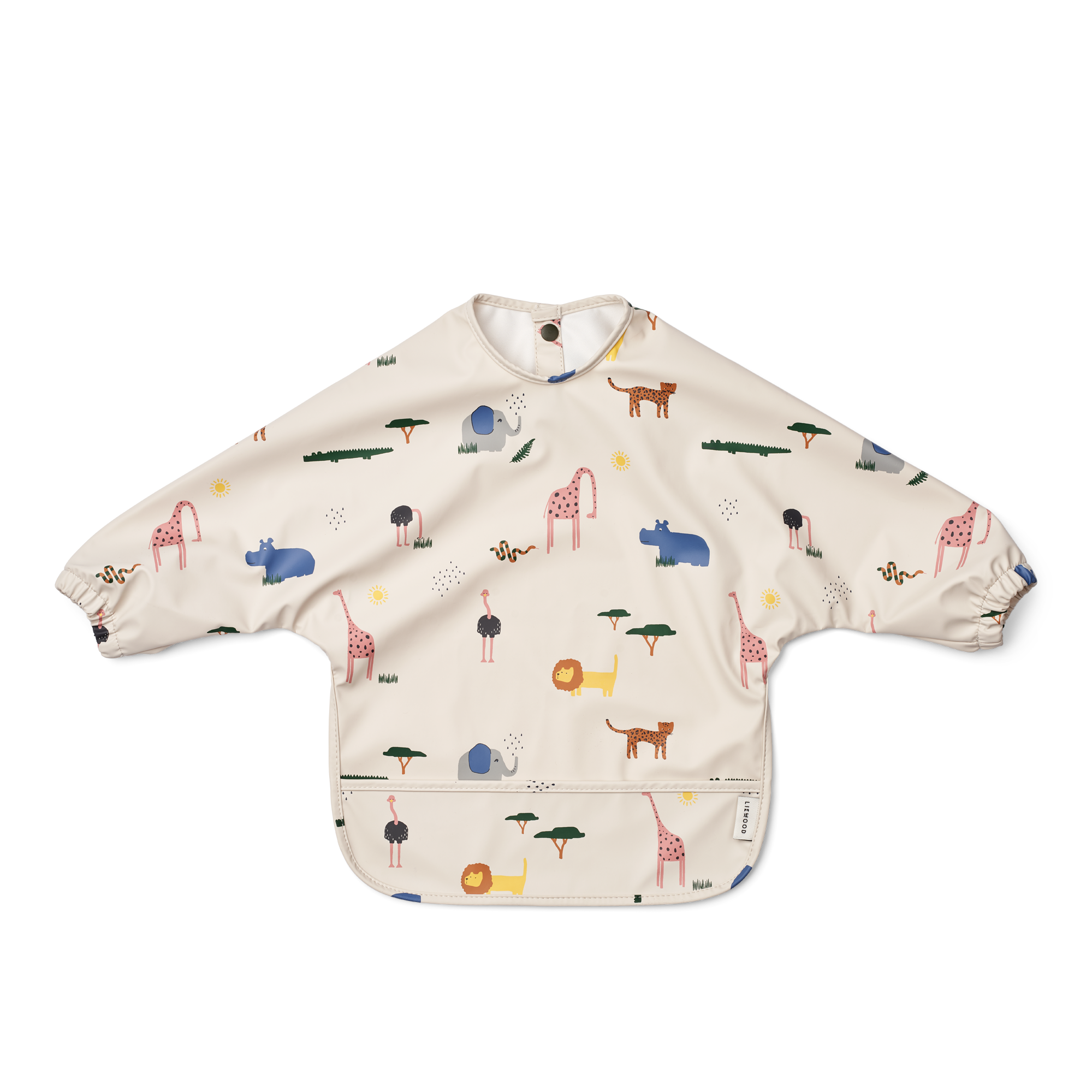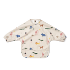 Lichtgewicht cape slabbetje met opvangvakje voor kinderen die leren te eten. Het gerecyclede materiaal maakt het direct herbruikbaar: gewoon afspoelen en schoonvegen.