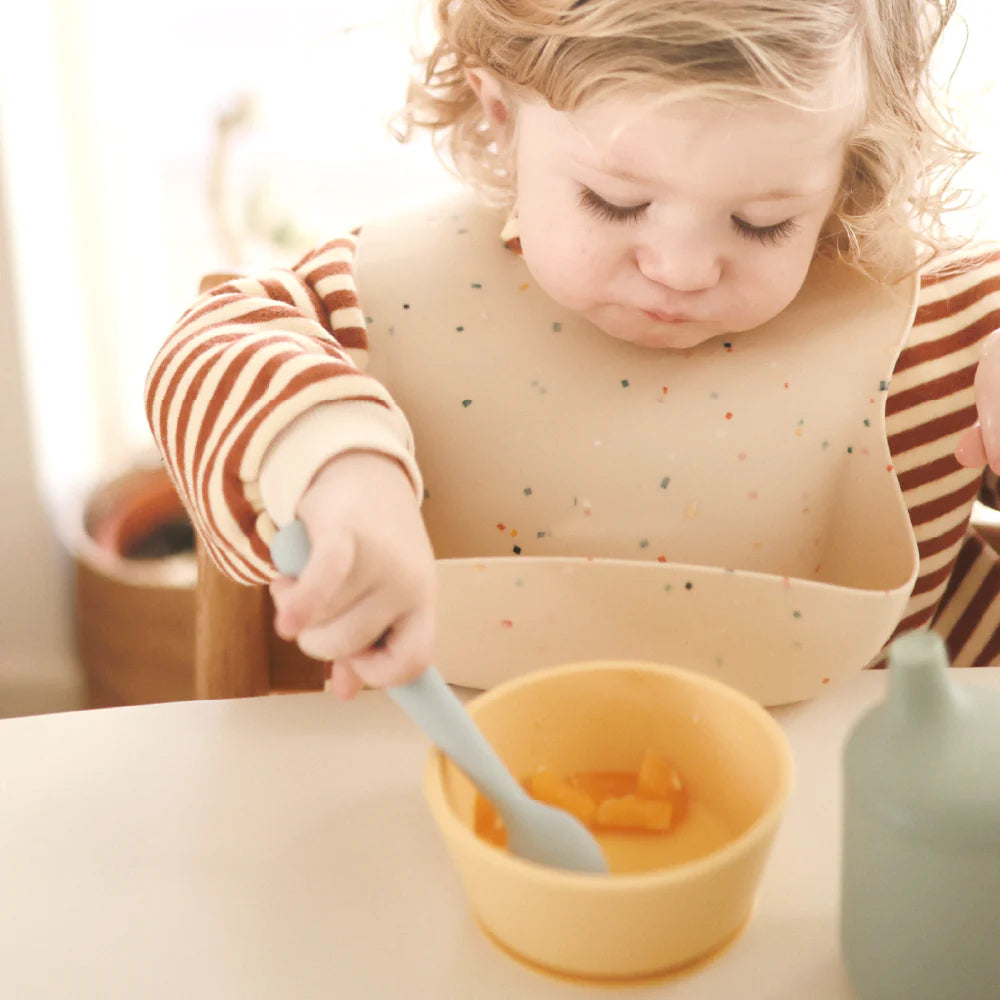 Een siliconen slabbetje houdt je kleintje en de omgeving schoon: