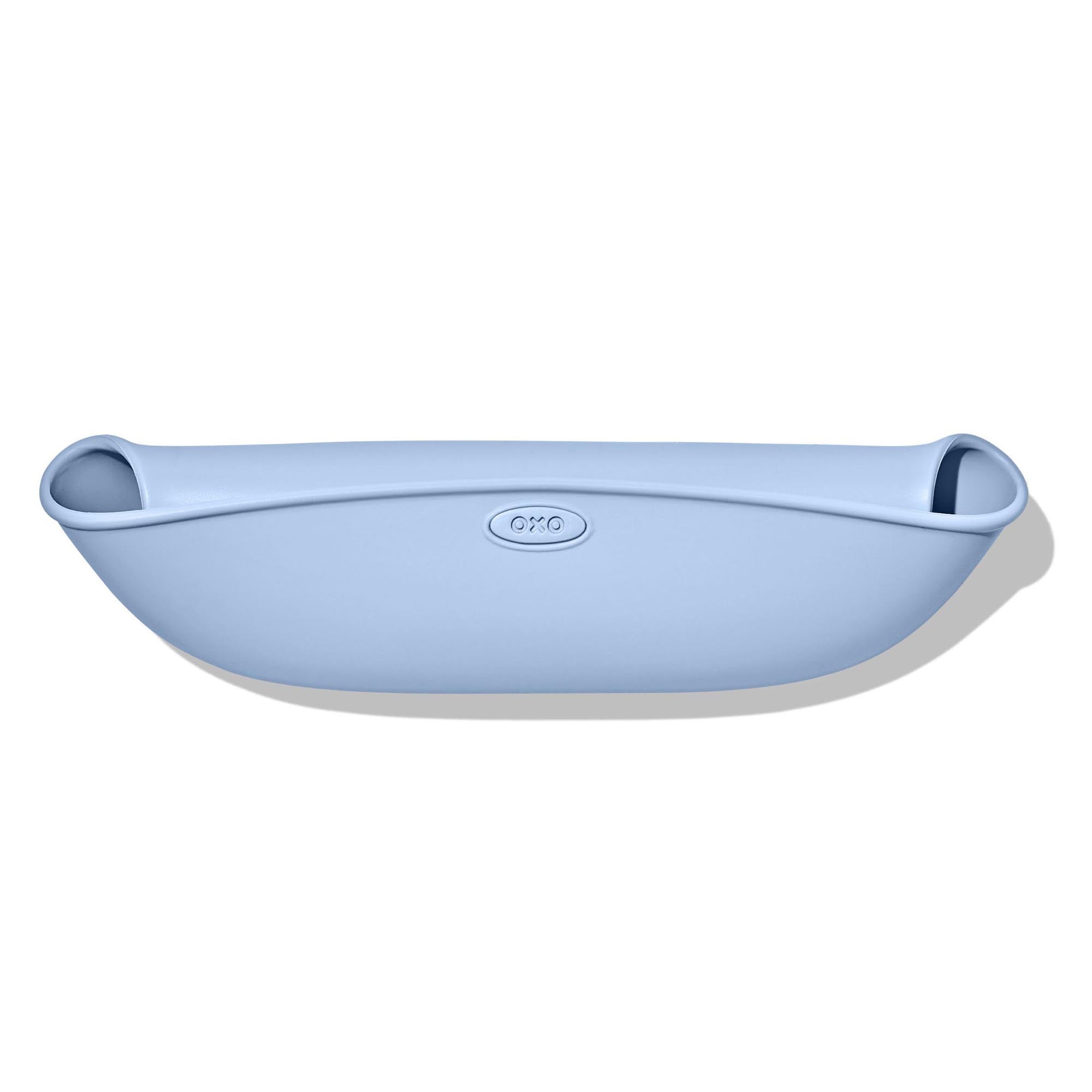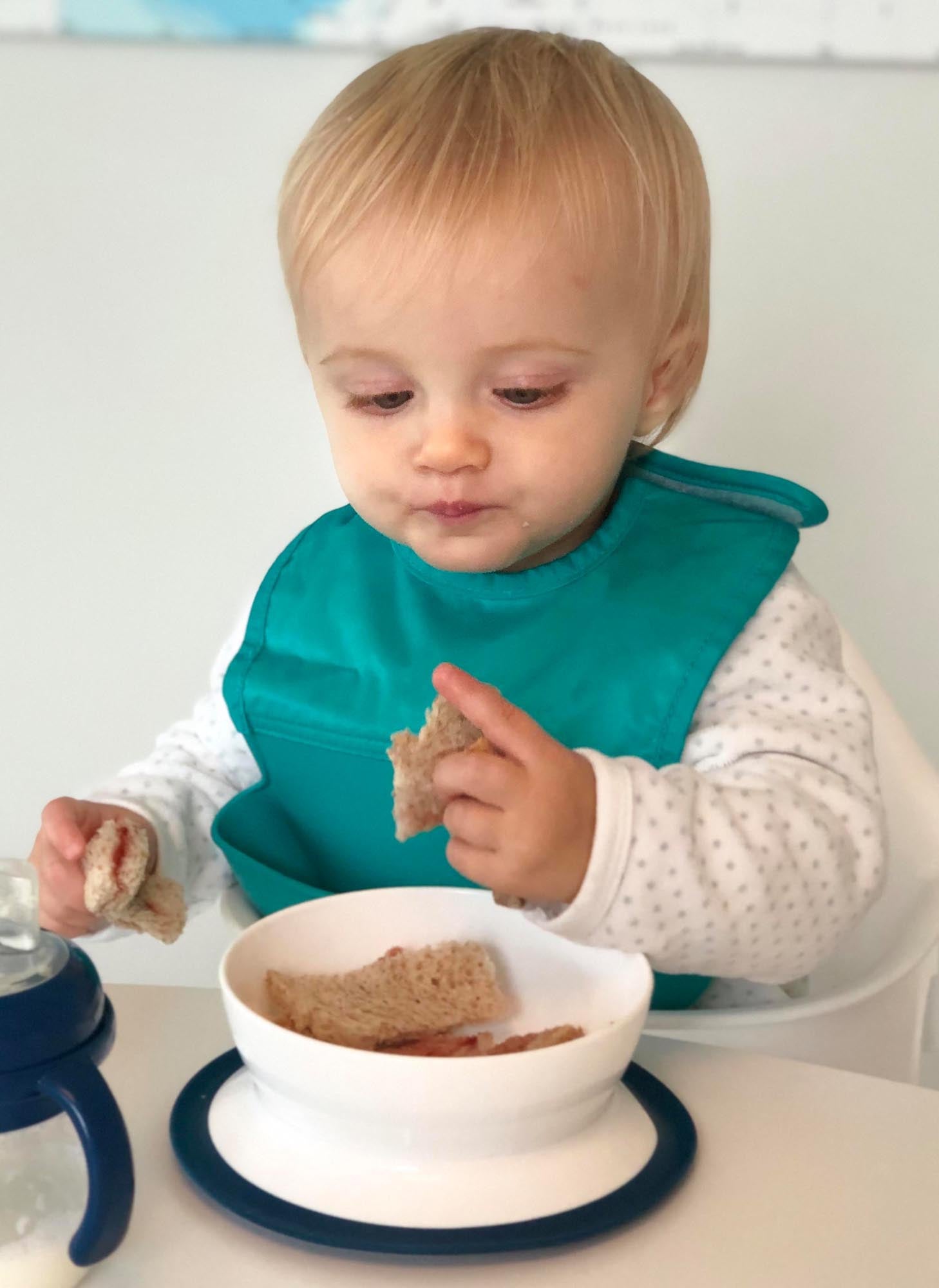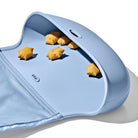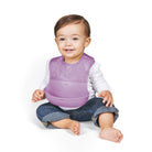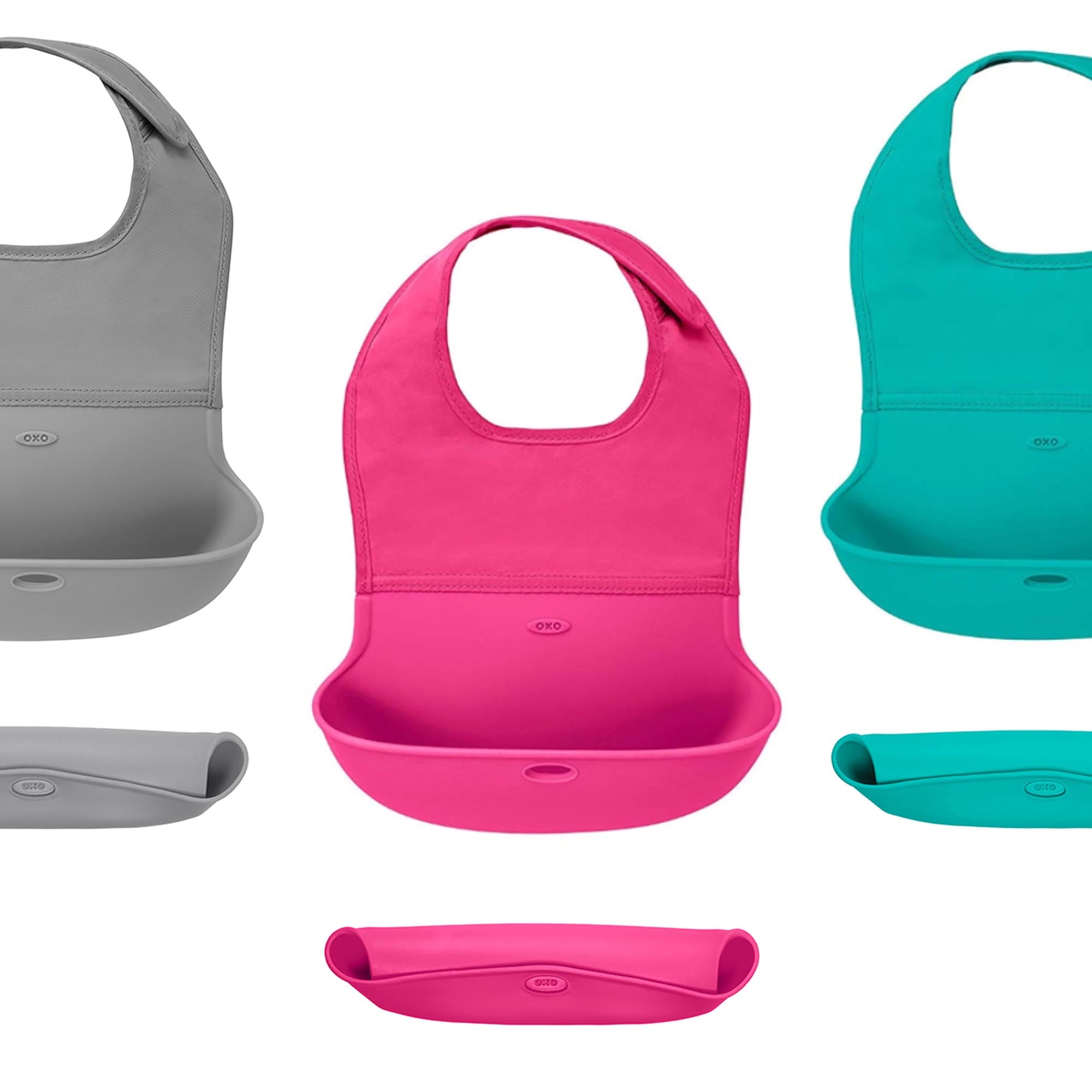 De brede slab beschermt je baby’s kleertjes en de zachte siliconen opvangflap vangt alles op wat het mondje mist.
