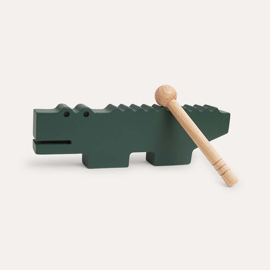 Kinderen kunnen samen muziek maken met deze vier houten muziekinstrumenten 'Torsten Music Instrument Set - Whale Blue - Garden Green' van het Deense merk Liewood. Uitnodigend speelgoed voor kleine muzikanten!