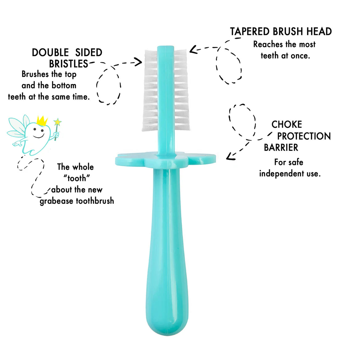 De tandenborstel wordt geleverd inclusief een fase 1-vingerborstel. Deze vingerborstel is ideaal om te gebruiken bij de allerkleinsten. Een fijn idee dat je kindje met Grabease op een veilige én speelse manier kennis maakt met een tandenborstel!