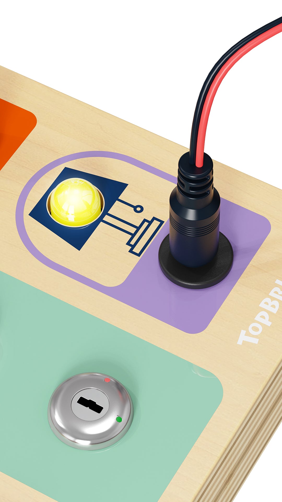 Compact en praktisch: De Busy Board Switch overtuigt door zijn compacte formaat. De sleutel- en kabelschakelaar zijn aan de zijkant van het huis bevestigd. Dit betekent dat het Busy Board snel opgeborgen kan worden en gemakkelijk te vervoeren is. Dit maakt het Busy Board perfect voor onderweg en een goede reisgenoot.