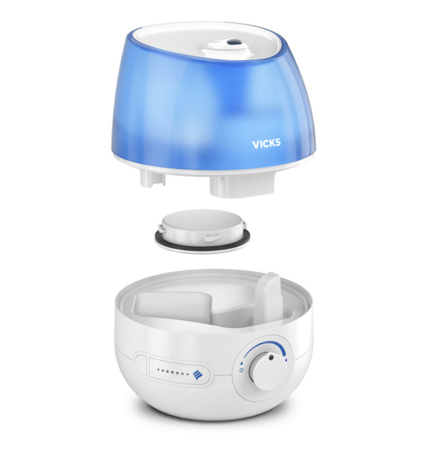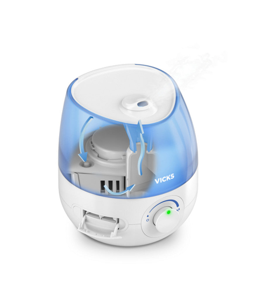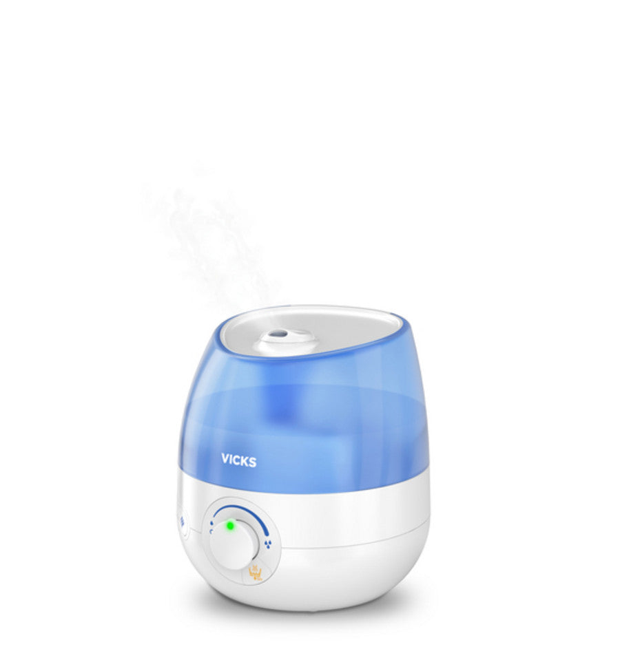 De Mini Cool Mist Ultrasone Luchtbevochtiger van Vicks verbetert de luchtkwaliteit en vochtigheidsgraad binnenshuis. De verstuiver helpt je makkelijker en vrijer te ademen en laat je beter slapen.