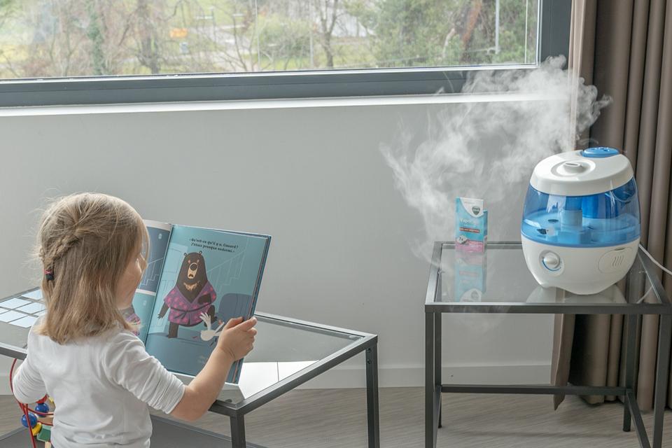 Met een luchtvochtigheid van 40-60% kunnen griepvirussen in de lucht verminderen en kunnen symptomen als hoest, verstopte en/of droge neus, droge huid en/of ogen worden aangepakt.
