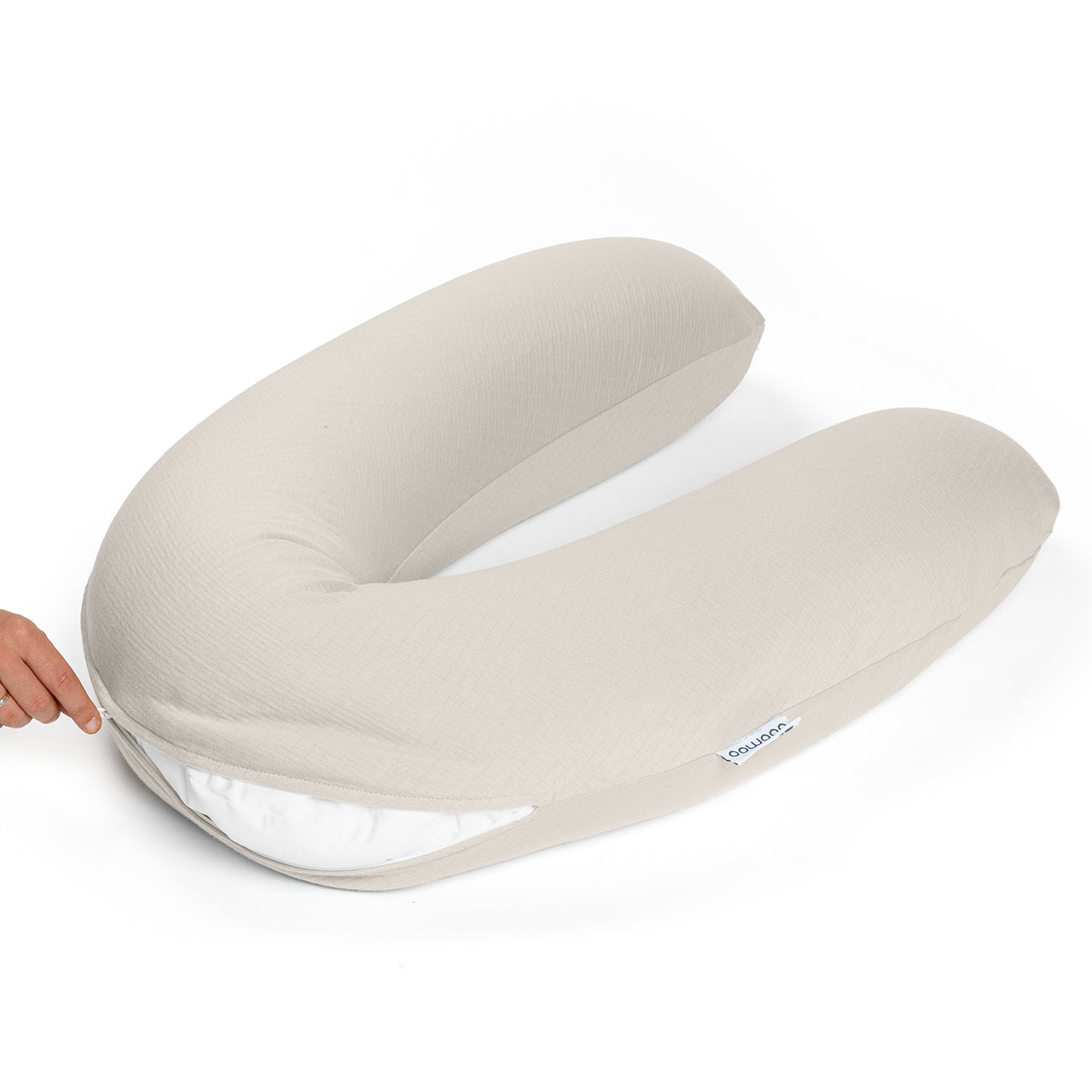 - Verstelbare vorm: Dankzij de unieke vormgeving kan het kussen op verschillende manieren worden gebruikt om de perfecte positie te vinden voor jou en je baby.