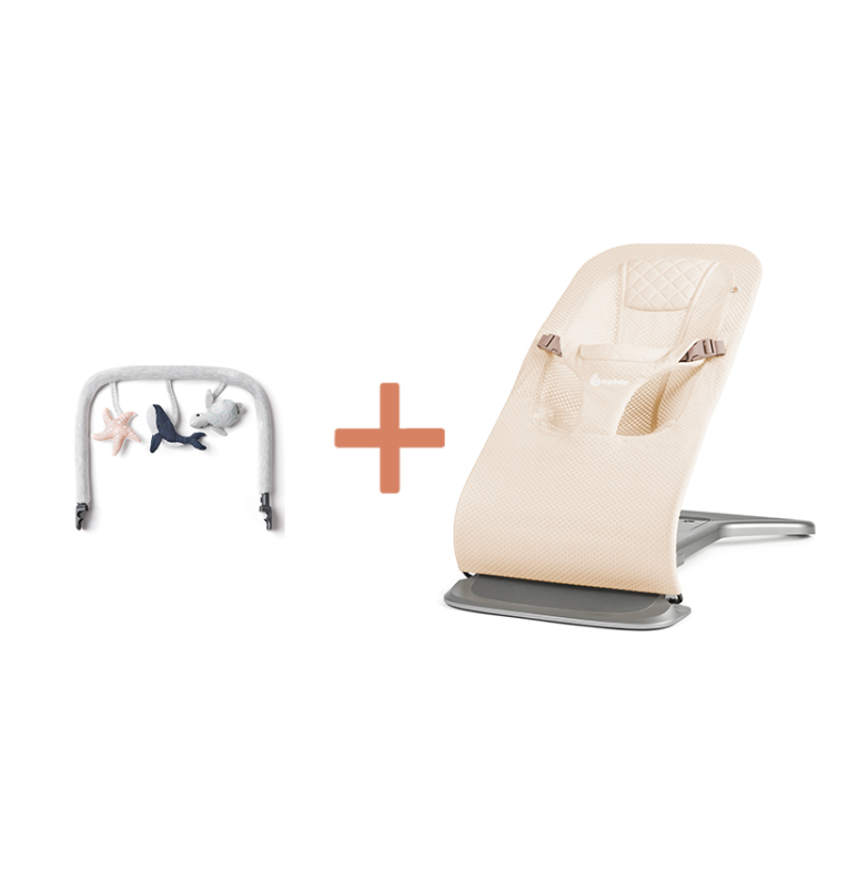 Ergobaby evolve bouncer wipstoel - creme beige mesh + gratis speelboog t.w.v. € 49,90