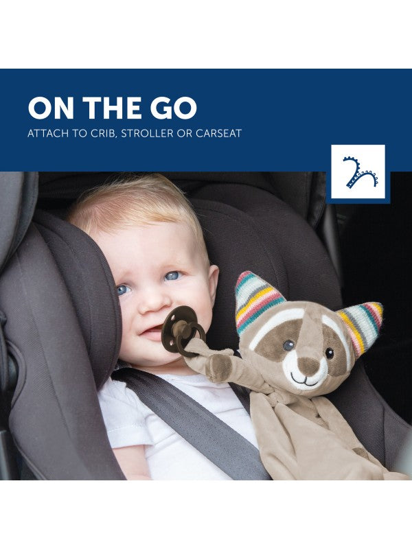 Maak het knuffeldoekje met de speen houder vast aan de speen. Of gebruik het klittenbandje om het doekje vast te maken aan het bedje van je kleine of aan de wandelwagen, zo is Felix altijd in de buurt!