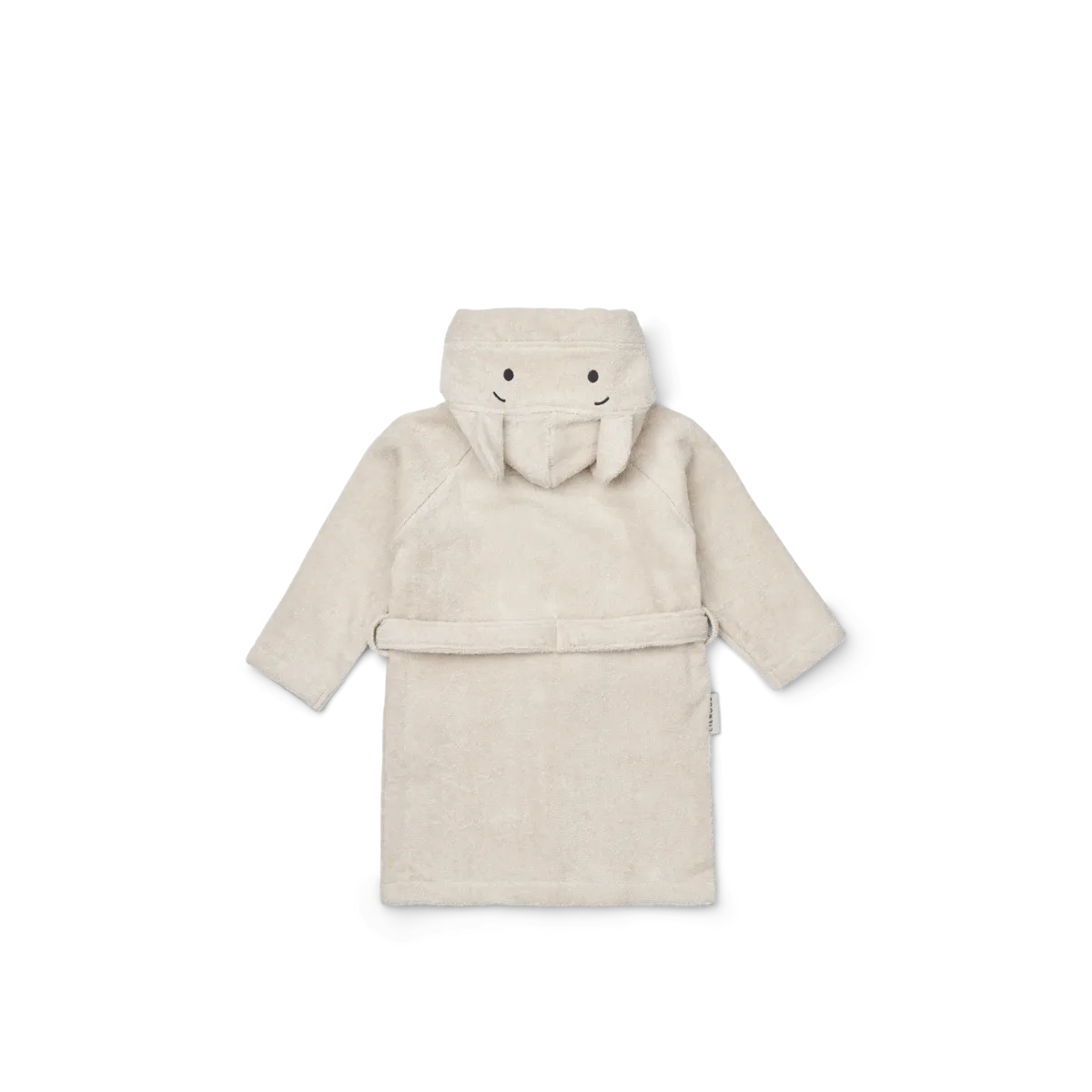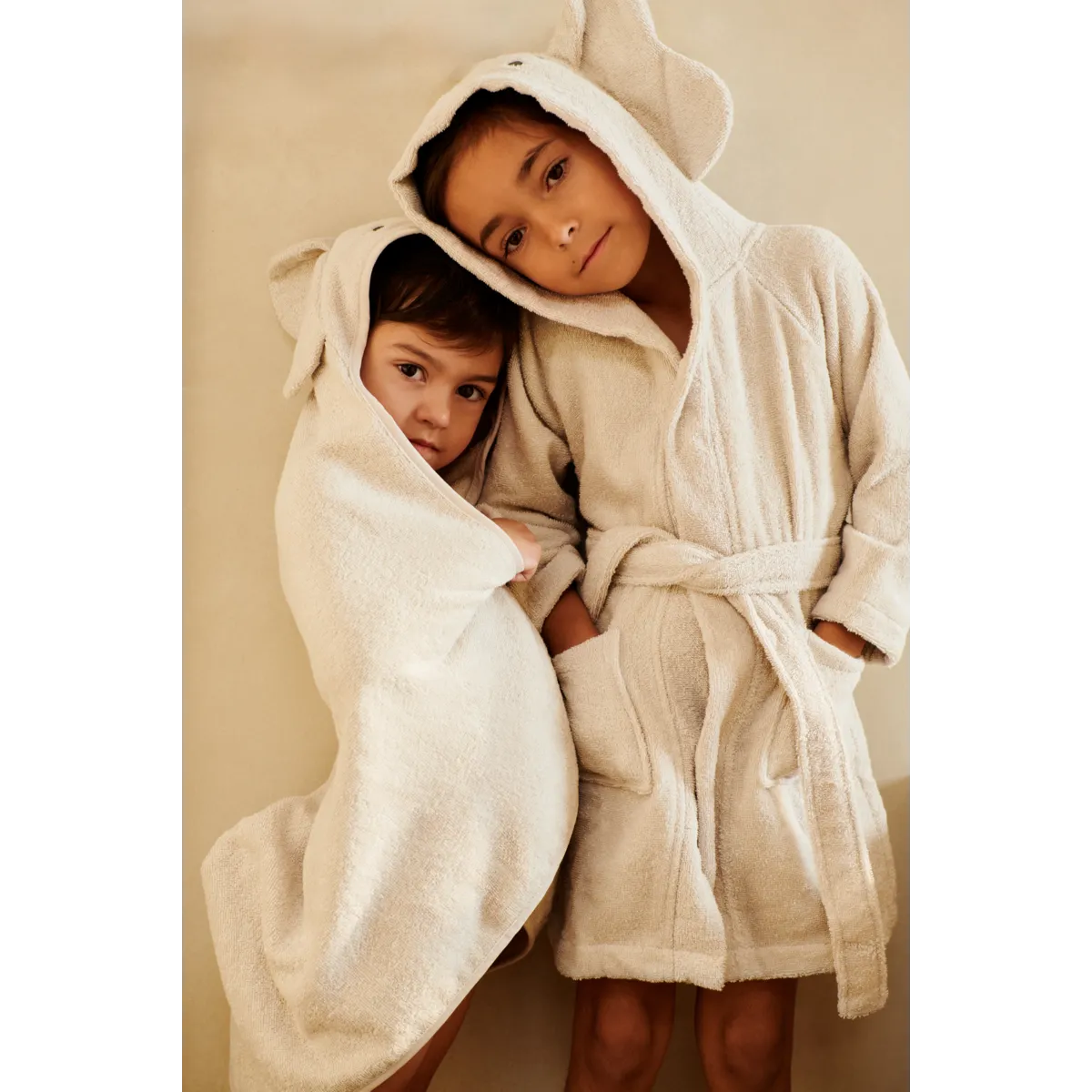 Deze heerlijke zachte badjas van Liewood is voor de iets grotere kindjes en ideaal voor bij het zwembad, na een warm bad, een frisse douche, voor het slapen of een luie zondagmorgen. De badjas is gemaakt van 100% terry katoen en heeft een schattig nijlpaard gezichtje als capuchon. De badjas blijft goed dicht met de drukknopen.