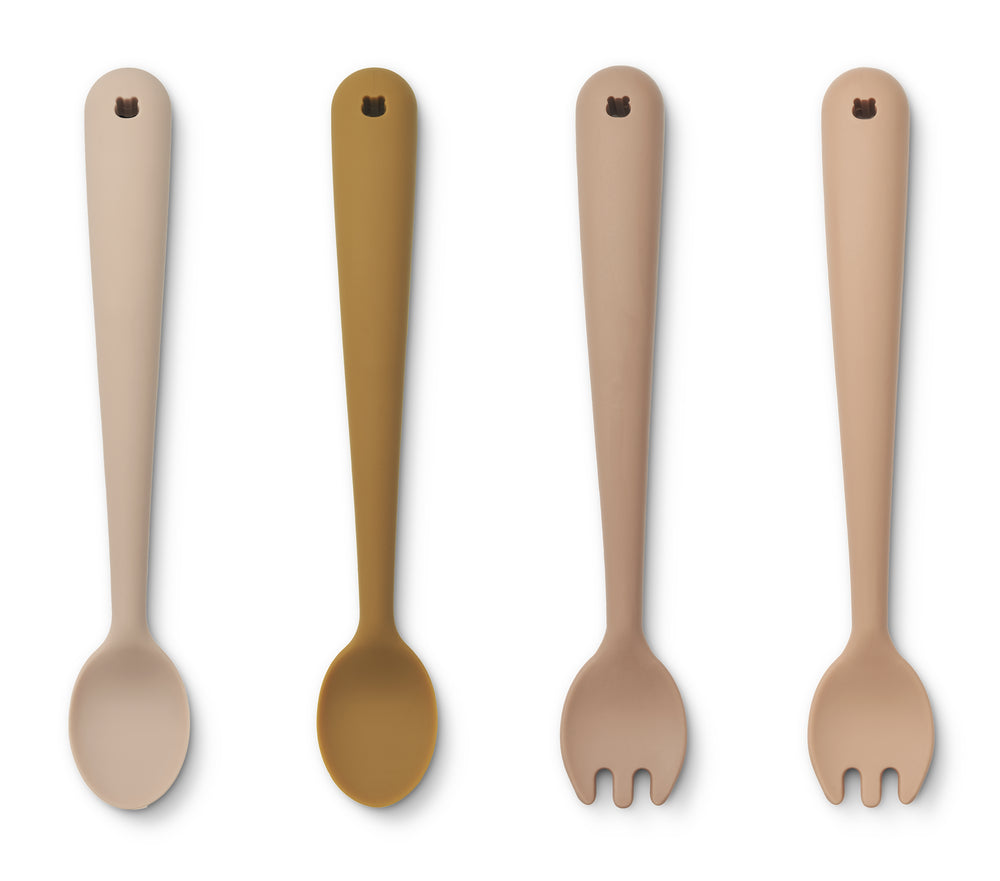 • L'ensemble contient : 2 cuillères à manger Siv et 2 fourchettes à manger Scott