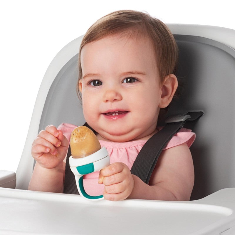 Placez simplement un morceau de nourriture dans le bec verseur en silicone et votre tout-petit pourra téter et goûter à sa guise, sans aucun risque d’étouffement.