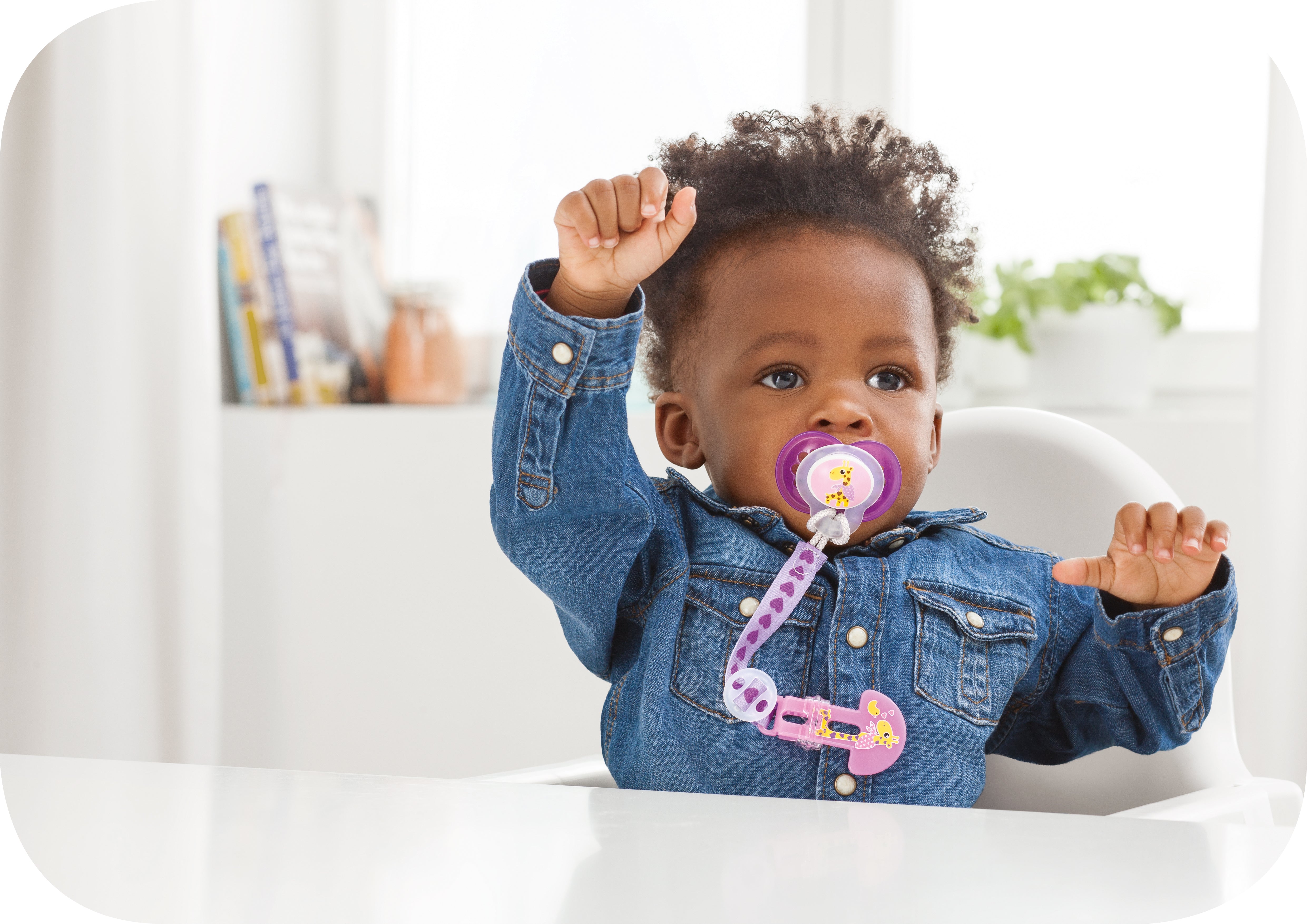 Stable et polyvalent comme toujours, le nouveau MAM Clip peut être utilisé avec une grande variété de sucettes et autres accessoires pour bébé.