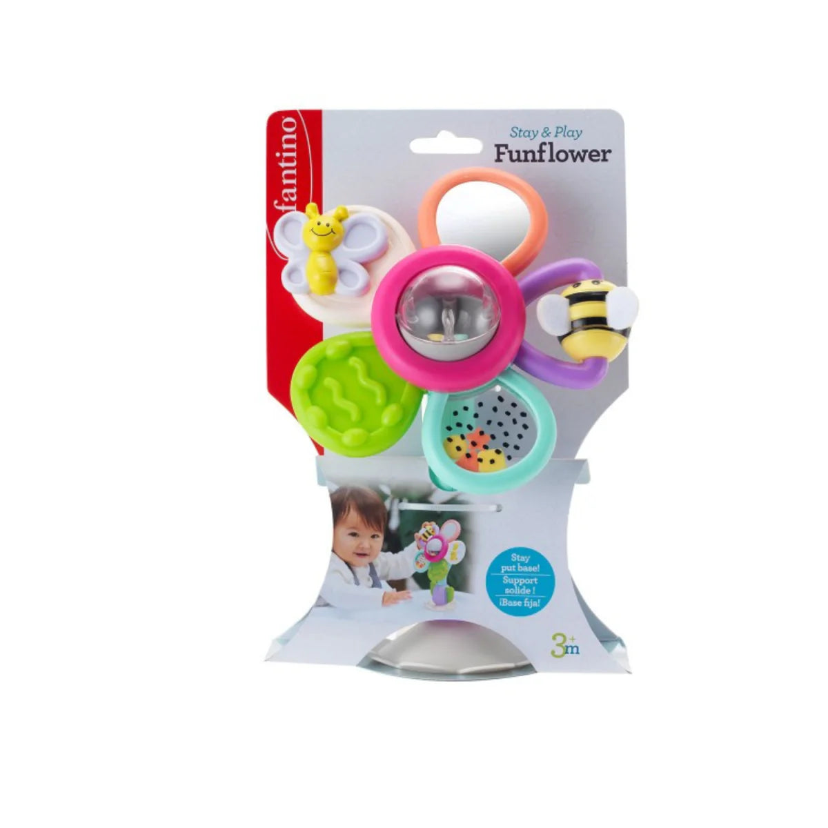 Le Funflower Infantino Stay & Play est un jouet interactif pour bébés conçu pour stimuler leur développement sensoriel. En forme de fleur, il propose différentes textures, couleurs et sons qui piquent la curiosité de bébé. Les pétales du Funflower sont souvent ornés d'éléments ludiques, tels que des miroirs, des matières douces et des textures froissées, qui stimulent les sens visuels et tactiles de bébé.