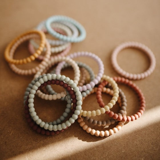 Bracelet de dentition en silicone Mushie (lot de 3) - moelleux/terracotta/pervenche