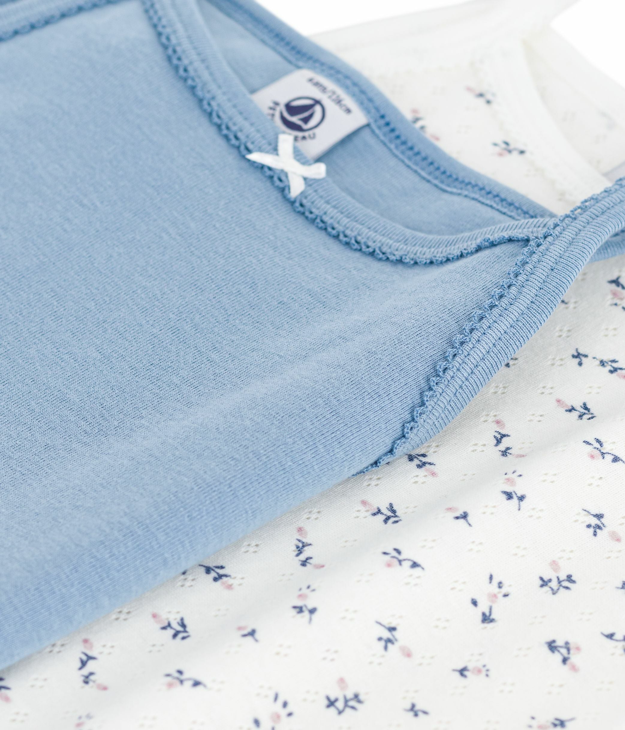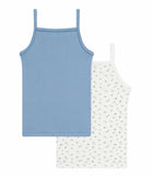 Ensemble de 2 camisoles pour fille en tissu côtelé 1x1, un tissu extensible et confortable.
