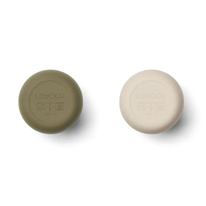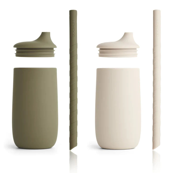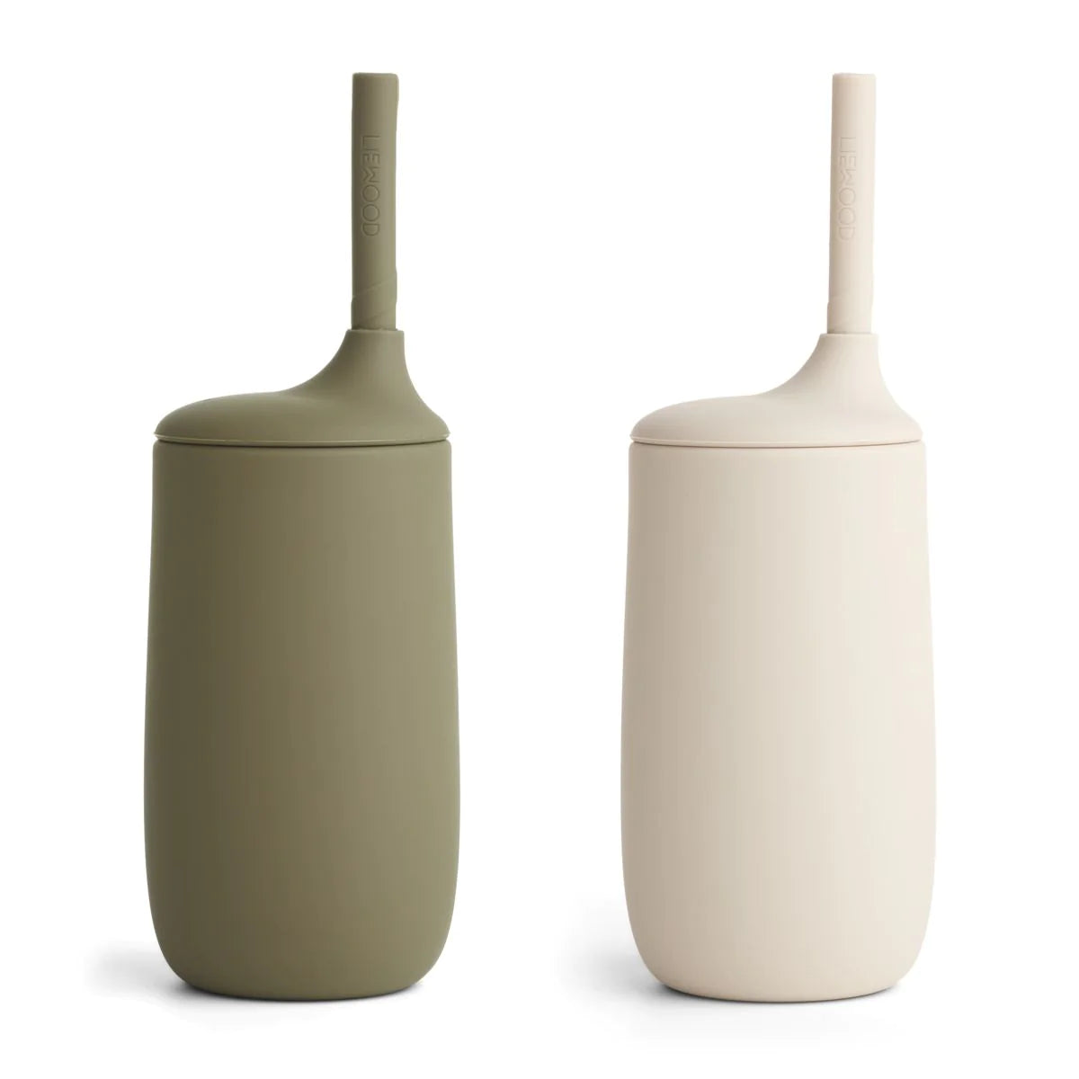Tasse en silicone Liewood Dylan avec paille, lot de 2 - kaki/sable