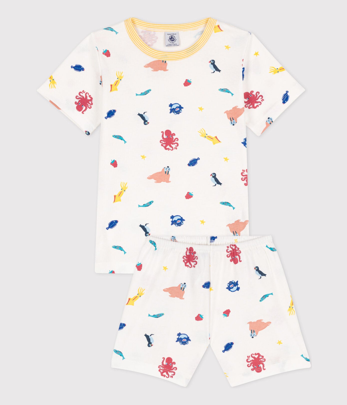 Pyjama court lumineux Petit Bateau en coton animaux marins