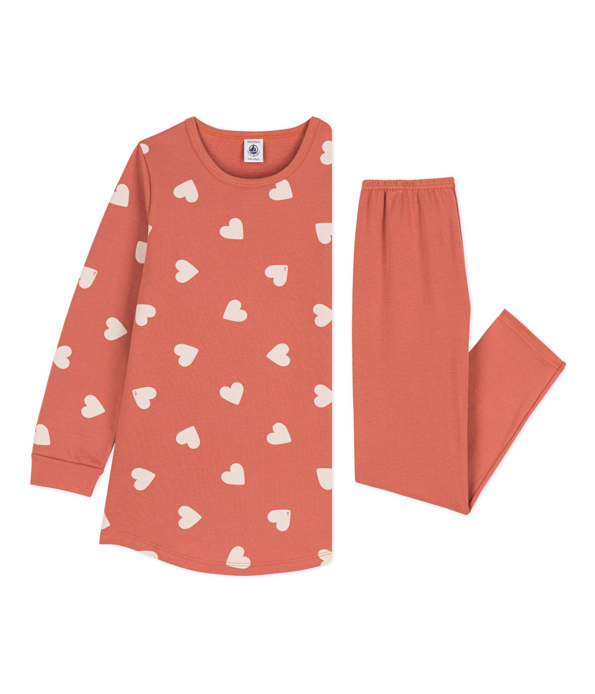 Petit Bateau Pyjama 2 pièces coeur en molleton et coton