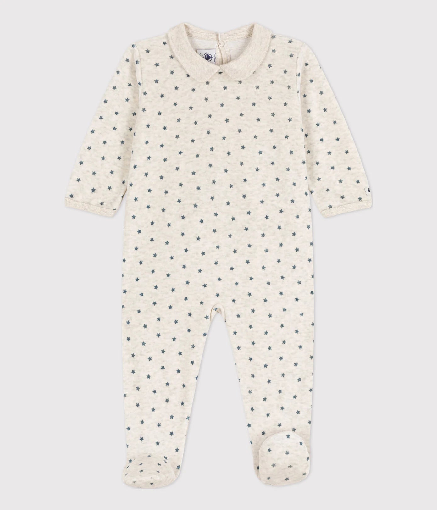 - Grenouillère en velours, la matière idéale pour un pyjama. Elle garde bébé bien au chaud.