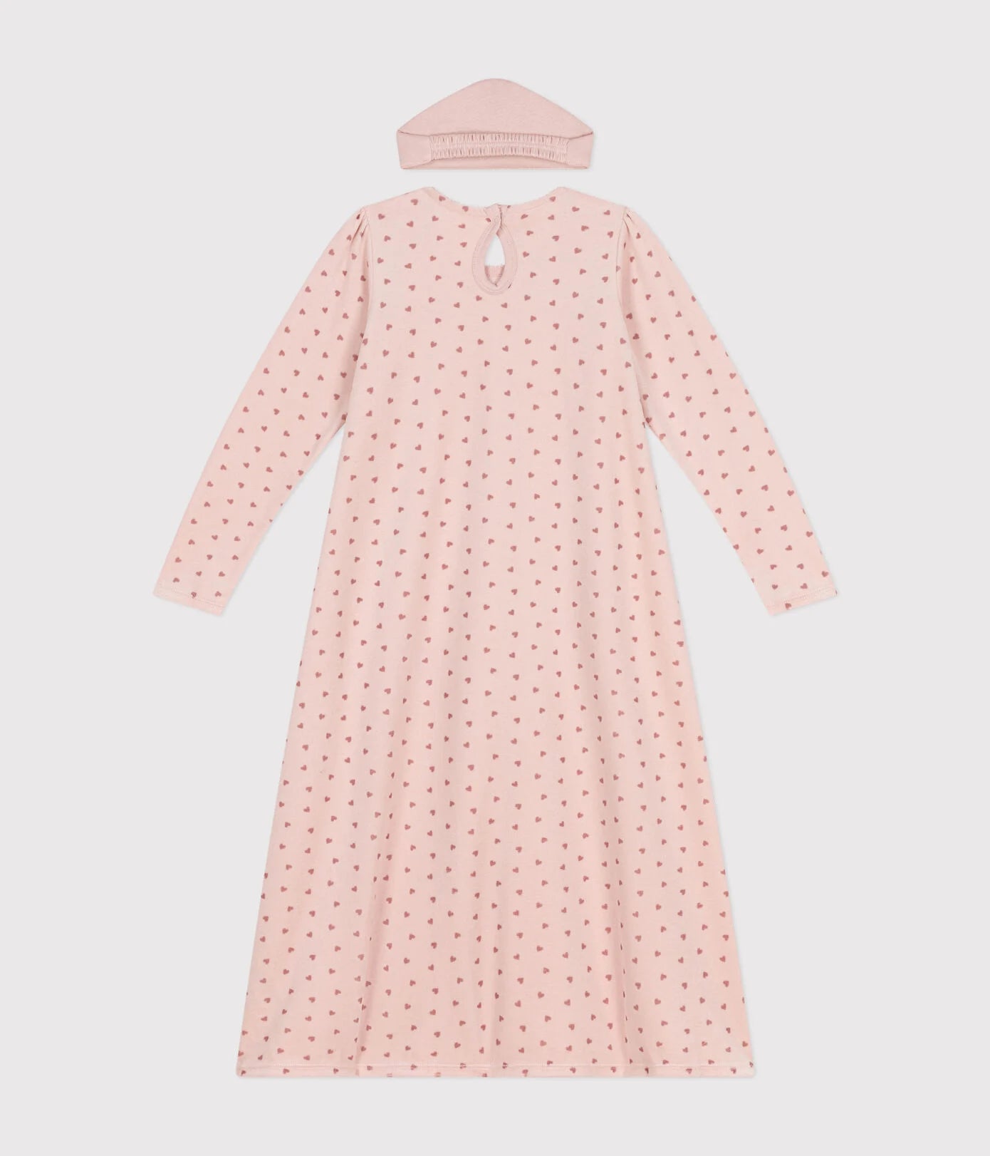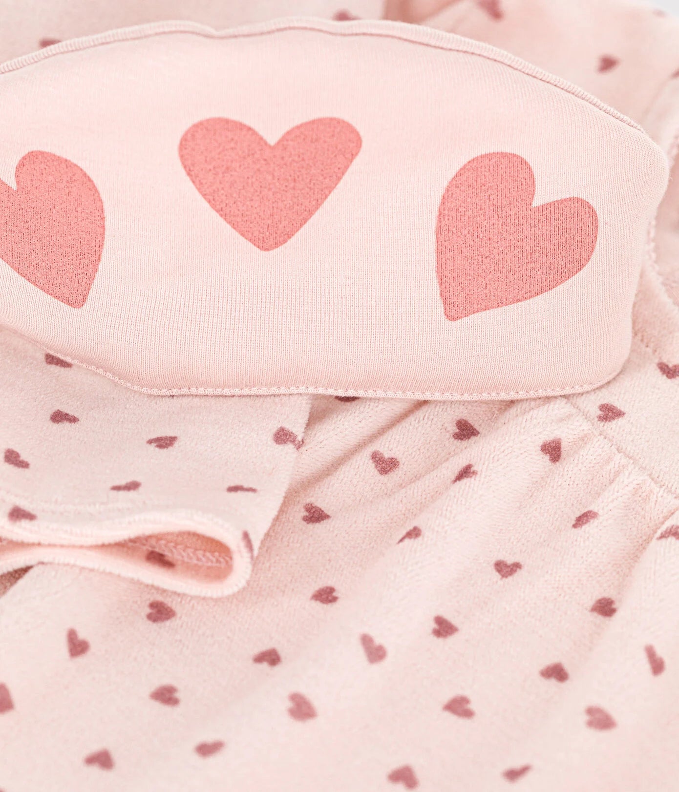 - Capuche élastiquée en tissu côtelé, le tissu typique de Petit Bateau, imprimé de cœurs