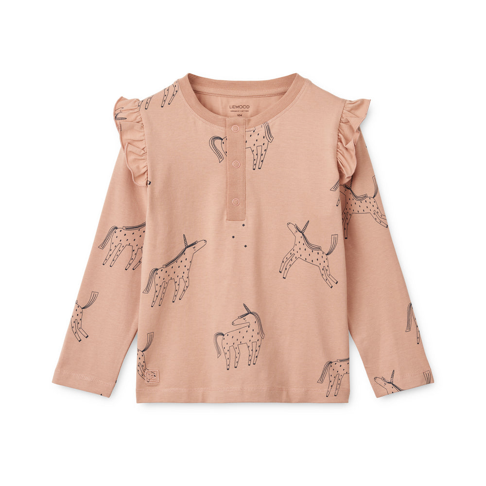 Ensemble de pyjama à volants imprimé Liewood Wilhelm licorne / toscane pâle