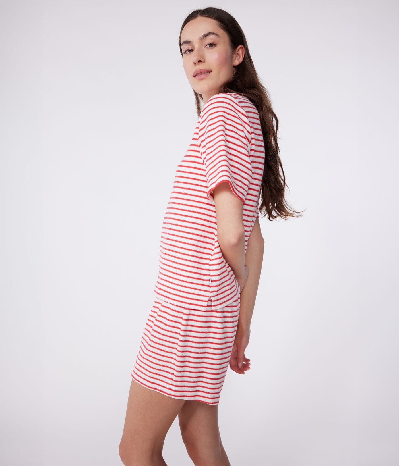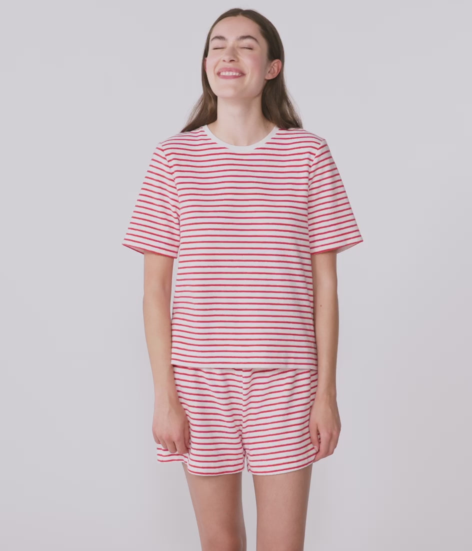 Pyjama court pour femme en éponge de coton, un tissu léger.