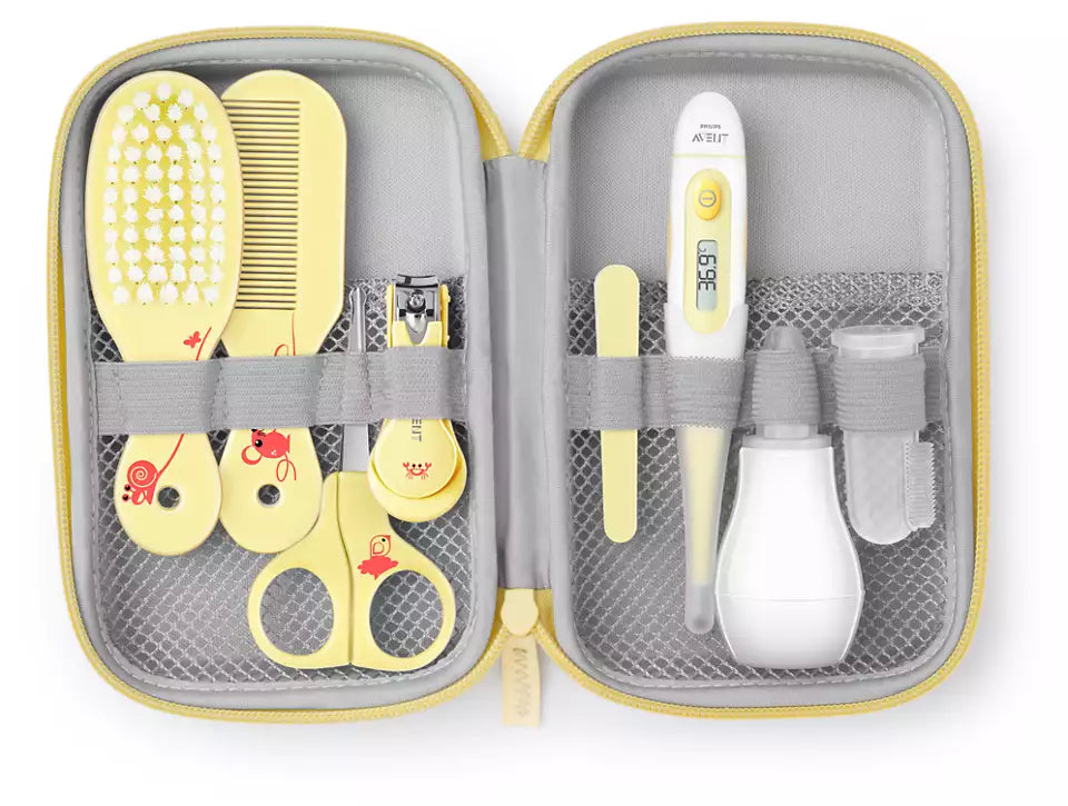 Offrez à votre tout-petit les meilleurs soins grâce au coffret de soins Philips Avent SCH400. Ce coffret compact comprend un thermomètre numérique précis, confortable et rapide, un mouche-bébé à embout souple, une brosse à dents digitale et un kit de soins pour les ongles et les cheveux.