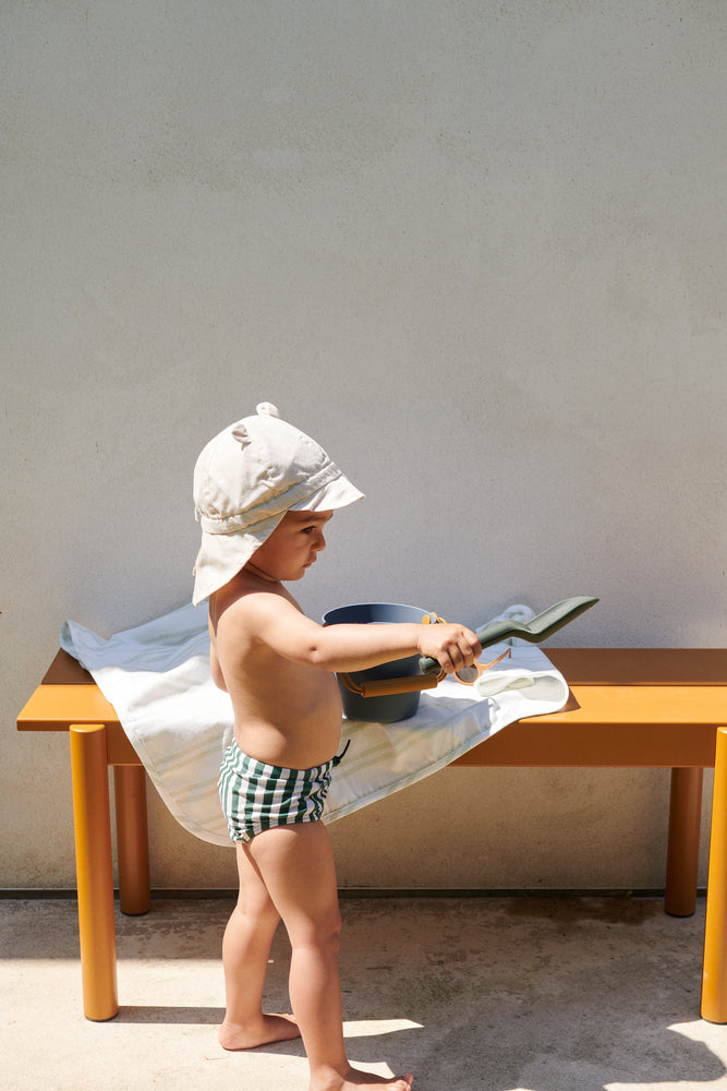 Le chapeau de soleil Gorm de Liewood est idéal pour les chaudes journées d'été. Son col plus long protège votre enfant du soleil et lui évite d'avoir trop chaud. Le cordon de serrage permet d'ajuster légèrement la taille. Le tissu sèche rapidement et arbore d'adorables oreilles à imprimé animal.