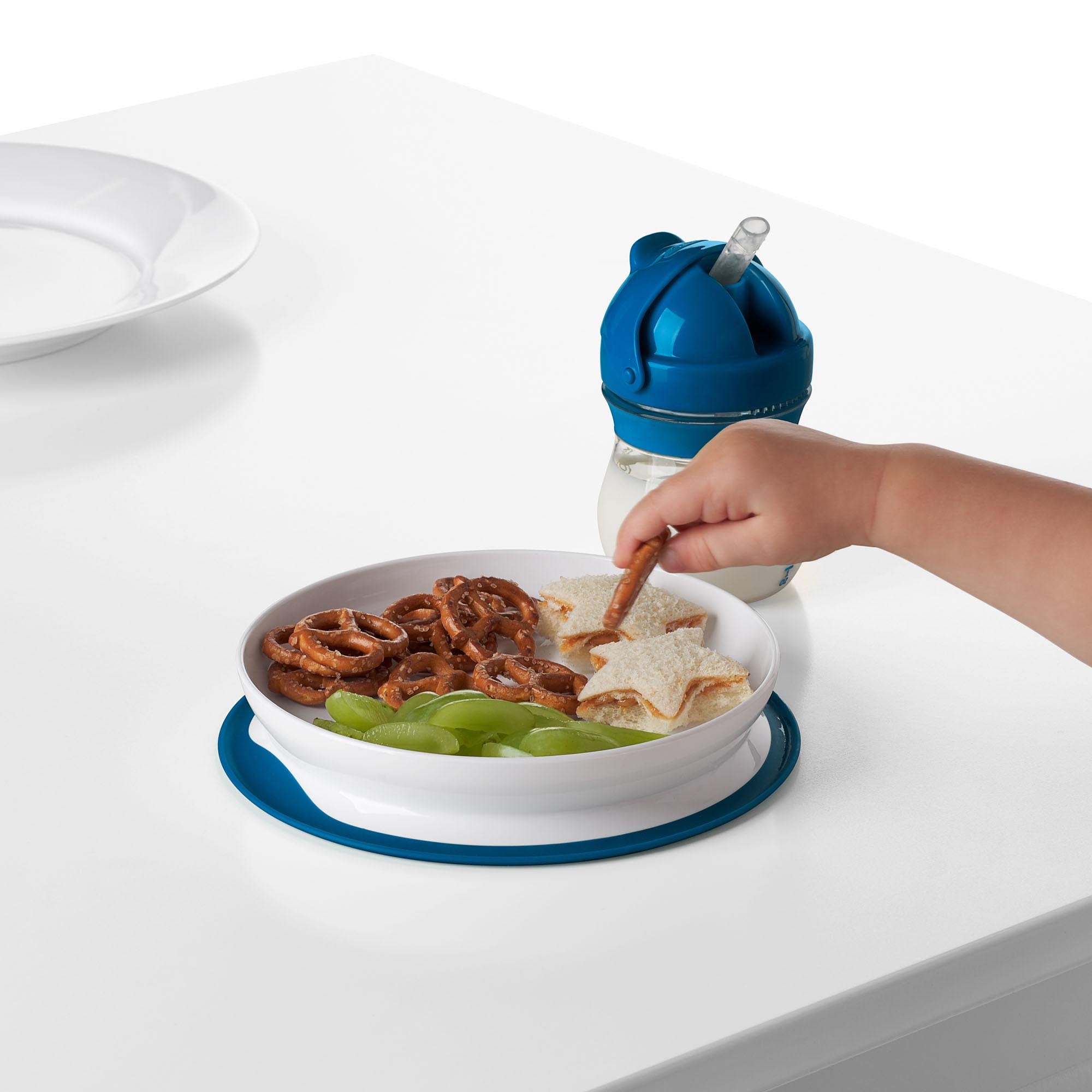 Cette plaque ingénieuse peut être utilisée grâce à la base à ventouse en silicone Adhère parfaitement à votre table. Le fond et la ventouse en silicone empêchent les assiettes de glisser, de basculer ou de tomber par terre. L'assiette est facile à soulever pour les adultes, mais pas pour les petites mains.