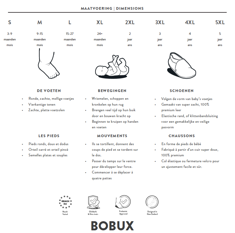 - Volledige buigzaamheid zodat voeten zich natuurlijk kunnen ontwikkelen