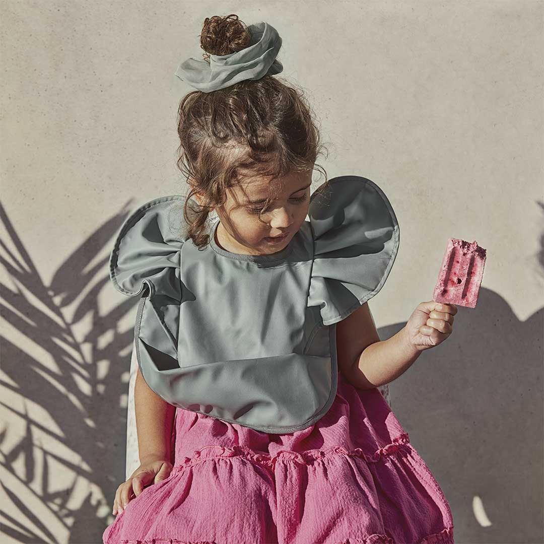 Indien het iets meer mag zijn, of voor de enthousiaste eters zijn er nu ook de slabbetjes met vleugeltjes, waarbij de schoudertjes mee beschermd worden.