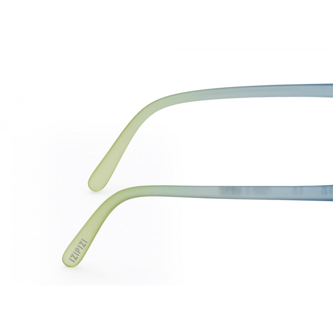 Izipizi #D zonnebril in kleur Blue Mirage. De zonnebrillen van het Franse Izipizi zitten enorm comfortabel. De reden? De flexibele oren, scharnieren en de 'soft touch' afwerking. Hierdoor voelen de brillen zacht aan en is het een plezier om ze te dragen. Deze zonnebril, met gepolariseerde lenzen, filtert 100% van de UV-categorie 3 stralen.