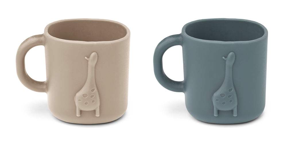 Liewood chaves siliconen bekers 2 pack - dark sandy / whale blue - giraf olifant