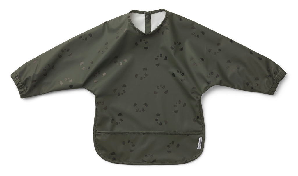 Lichtgewicht cape slabbetje met opvangvakje voor kinderen die leren te eten. Het gerecyclede materiaal maakt het direct herbruikbaar: gewoon afspoelen en schoonvegen.