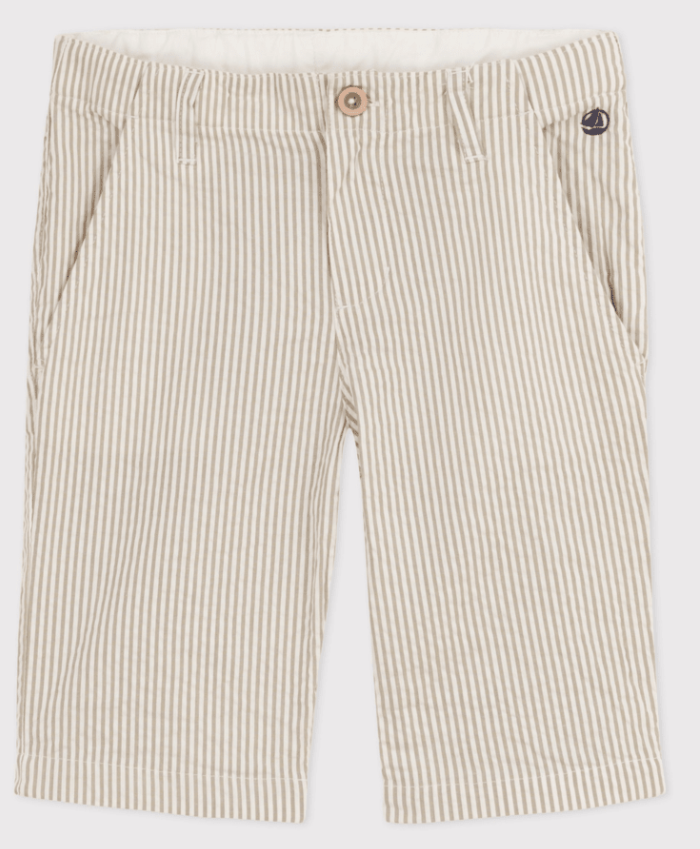 Seersucker-bermudashort voor jongens Nette, frisse bermuda van seersucker, perfect voor zomerevenementen. Met hun rechte pasvorm en dunne strepen zijn ze perfect voor alle gelegenheden. Elastische tailleband die zich aanpast aan het kind.